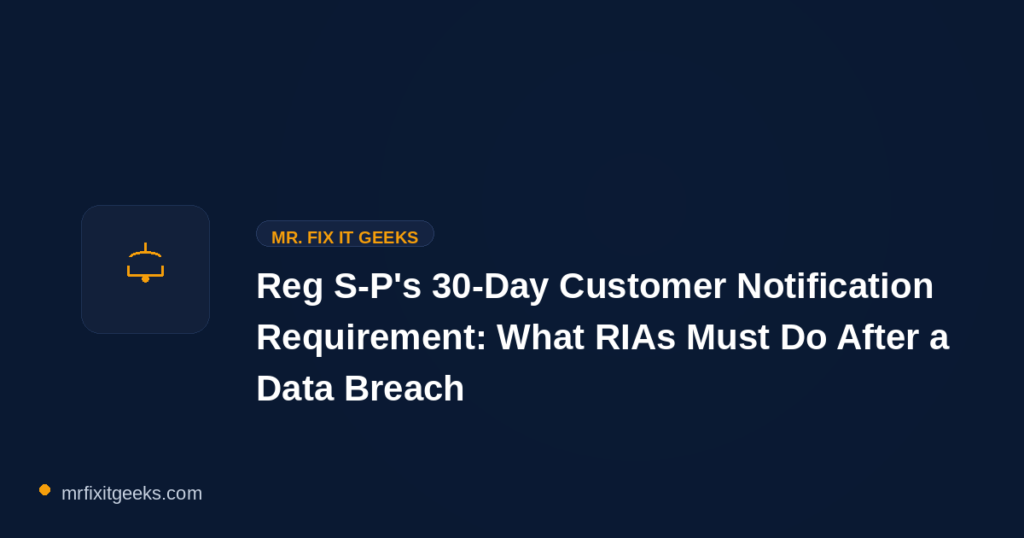 When a data breach occurs at your RIA firm — or at a vendor holding your client data — you have 30 calendar days to notify affected customers. Not 30 business days. Not 30 days from the conclusion of your forensic investigation. Thirty calendar days from the point at which your firm becomes aware of […]